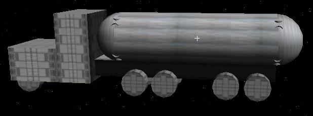 The first and only space-capable Tank Truck! This truck can carry 350,000 kg of liquid hydrogen for refueling spaceships such as Hornets or Space Shuttles. It has enough thrust to propel both itself and its load at 1 g-unit, both forwards and backwards, using its advanced 30,000 ISP environmentally friendly magnetoplasma rocket system! No need to turn around to stop! Even if you do require a turn, the tank truck's full thruster suite will provide ample maneuverability. Perfect for tricky docking. If you need to transport liquid hydrogen anywhere, then this is the vessel for you!